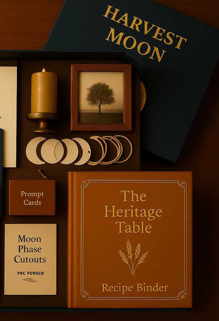 Harvest Moon - A Moments We Keep Experience is an annual tradition — a curated collection of rituals, flavors, and tokens made to be kept and returned to as the seasons turn. Inside, you’ll find the glow of beeswax, the rhythm of the moon in your hands, a story for the heart, and space to record your own reflections — all prepared to help you pause, connect, and mark this moment in the year.
