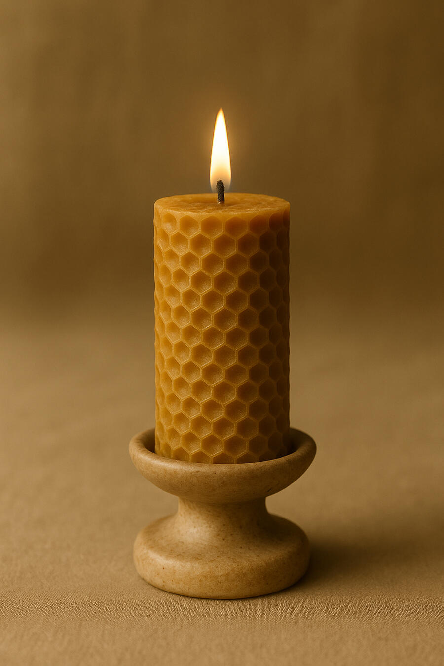 Beeswax Candle & Stone Stand omit a steady, golden flame for the evening’s center—lit as the moon rises and gently snuffed at day’s end.