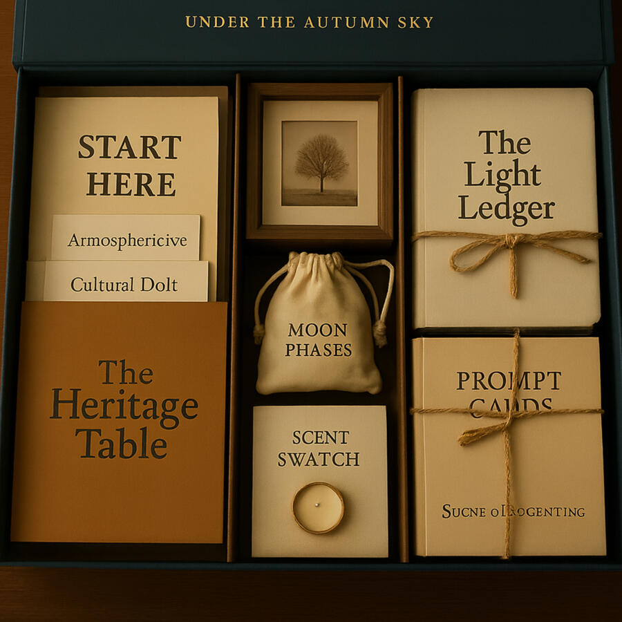 The first in the Moments We Keep collection, Harvest Moon gathers the season into your hands — the light, the stories, the table, and the keepsakes of autumn. Every piece arrives ready to open and begin, turning this season into one you will keep long after the leaves have fallen.