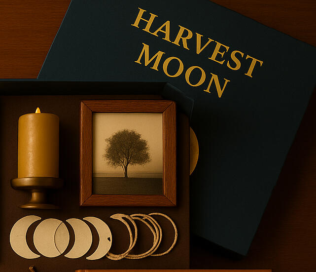 Harvest Moon - A Moments We Keep Experience is an annual tradition — a curated collection of rituals, flavors, and tokens made to be kept and returned to as the seasons turn. Inside, you’ll find the glow of beeswax, the rhythm of the moon in your hands, a story for the heart, and space to record your own reflections — all prepared to help you pause, connect, and mark this moment in the year.