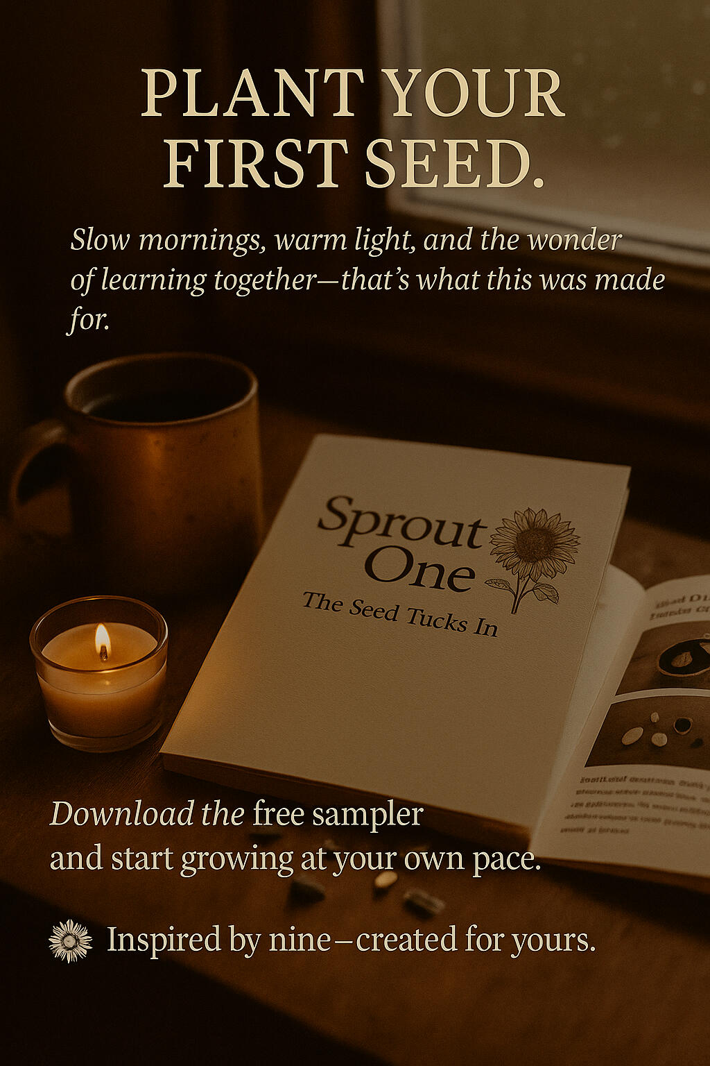 Download the very first mini experience: The Seed to Sprout- Sprout One Sampler — a printable story + activity set for curious kids ages 3-6.
